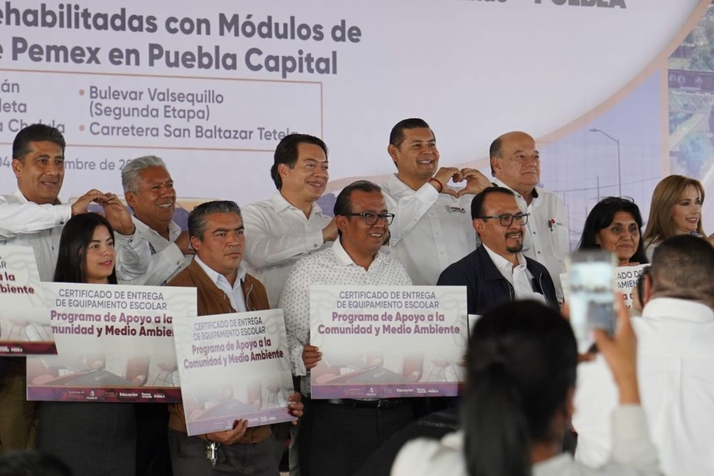 El gobernador Alejandro Armenta encabezó la entrega de 21 certificados de equipamiento escolar destinados a instituciones de la zona conurbada, como parte del compromiso estatal para fortalecer la infraestructura donde estudian niñas, niños y jóvenes. Primarias indígenas, telesecundarias y planteles generales de Puebla capital, San Pedro y San Andrés Cholula recibieron nuevos paquetes de mobiliario, en una primera etapa que contempla un total de 150 escuelas beneficiadas. El mandatario destacó que estas acciones dignifican los espacios educativos y se realizan en coordinación con el gobierno de la presidenta Claudia Sheinbaum.