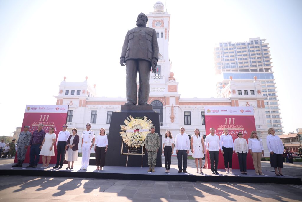 Con una guardia de honor y ofrenda floral ante el monumento a Venustiano Carranza, la gobernadora Rocío Nahle García conmemoró el 111 aniversario de la promulgación de la Ley Agraria, acompañada por autoridades de los tres órdenes de gobierno. Desde el Faro a Venustiano Carranza, donde en 1915 se emitió esta legislación, destacó que su administración impulsa una producción agrícola eficiente y sustentable, avanza en la regularización jurídica de ejidos y comunidades, y fortalece la inversión, la capacitación y la comercialización del campo veracruzano.